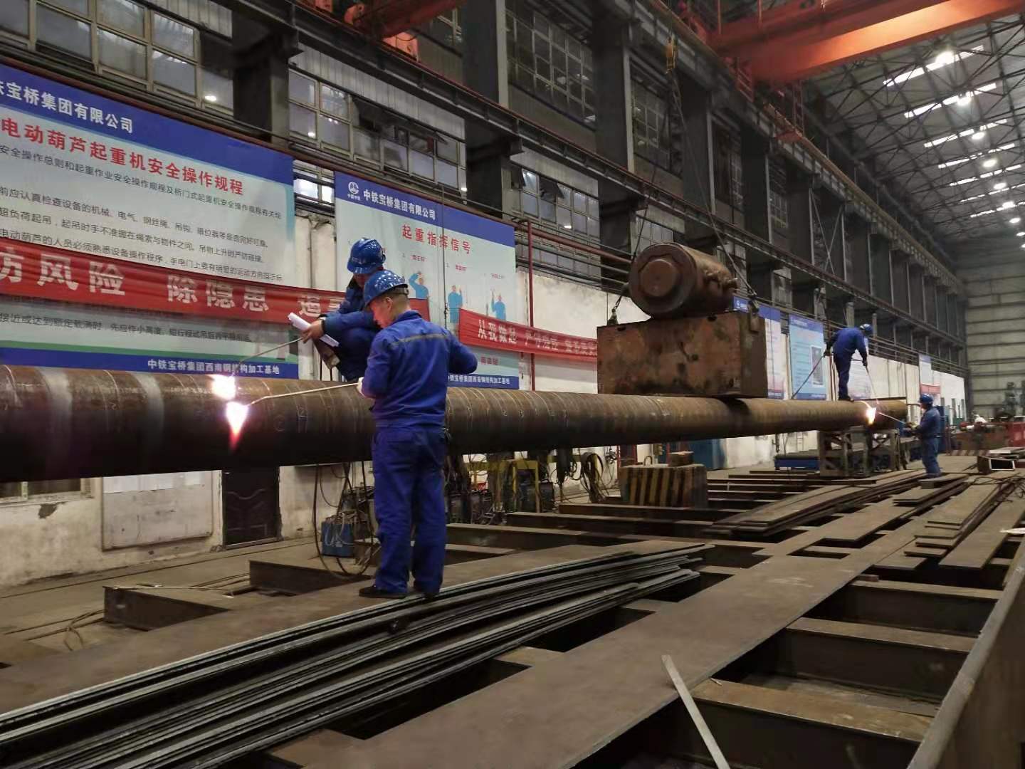 ????川船大業(yè)公司接到制作任務(wù)后,立即組織相關(guān)部門對該項目制作難點進行討論,施工前對施工人員進行技術(shù)交底。在各部門的通力協(xié)作下,川船大業(yè)公司成功攻克了景觀橋主拱厚壁鋼管整體圓弧火工加工工藝,保證了該項目順利推進。