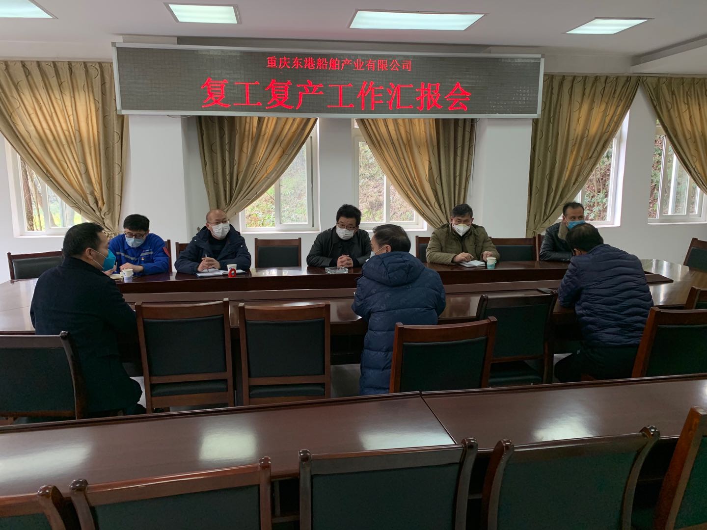 ????林俏一行首先聽取了東港船舶疫情防控工作情況匯報(bào),以及復(fù)工復(fù)產(chǎn)前期各項(xiàng)準(zhǔn)備工作情況。公司疫情防控工作辦公室成員與東港船舶疫情防控領(lǐng)導(dǎo)小組成員就公司在疫情防控工作中采取的措施進(jìn)行了溝通和交流,重點(diǎn)交流了人員管控、體溫檢測(cè)、就餐管理等方面的一些心得體會(huì)和經(jīng)驗(yàn)。