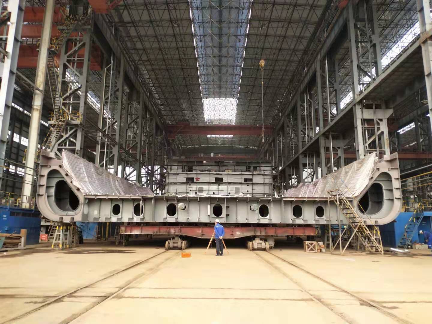 該船是公司在建重點(diǎn)船舶產(chǎn)品,采取艏、艉總段分別建造后再上斜架進(jìn)行大合攏對(duì)接的建造方法進(jìn)行建造。自今年6月開(kāi)工以來(lái),公司積極協(xié)調(diào)各方面資源,從營(yíng)銷、技術(shù)、采購(gòu)、生產(chǎn)等部門(mén)抽調(diào)專人成立項(xiàng)目部,及時(shí)有效解決各生產(chǎn)工序之間的矛盾,統(tǒng)籌推進(jìn)生產(chǎn)組織工作。船體工程部在生產(chǎn)建造過(guò)程中,大膽開(kāi)展工藝工法創(chuàng)新,推廣使用無(wú)碼裝配機(jī),全力推進(jìn)分段預(yù)合攏,生產(chǎn)建造工作提速提質(zhì),為實(shí)現(xiàn)該船上船臺(tái)節(jié)點(diǎn)目標(biāo)奠定了基礎(chǔ)。