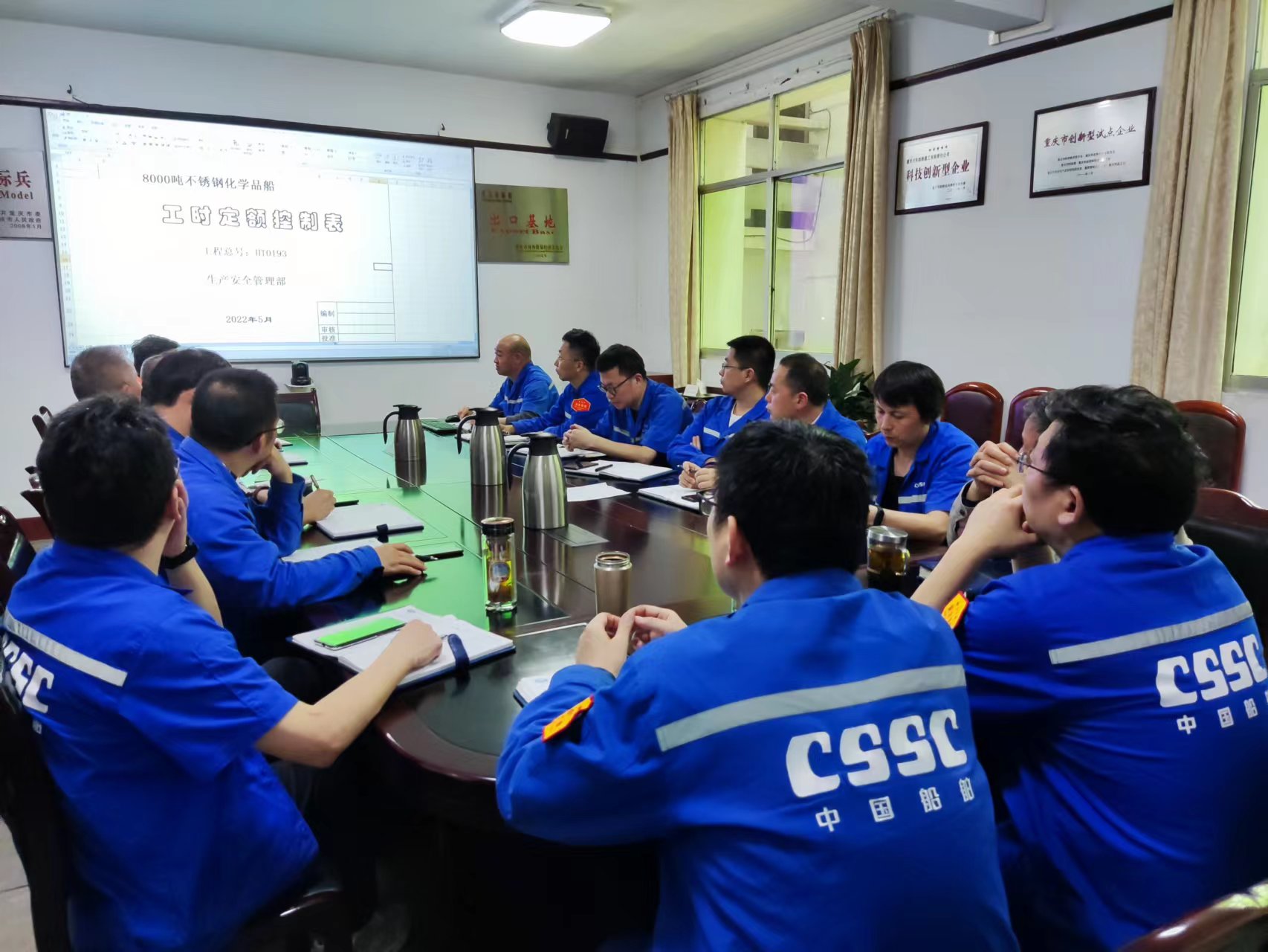 5月20日,中國(guó)船舶集團(tuán)所屬重慶川東船舶重工有限責(zé)任公司召開8000載重噸不銹鋼化學(xué)品船定額工時(shí)專題分析會(huì)。會(huì)議由生產(chǎn)安全管理部主持,公司總經(jīng)理王波,副總經(jīng)理陳光、葉念,科技委專家以及相關(guān)部門負(fù)責(zé)人參加。