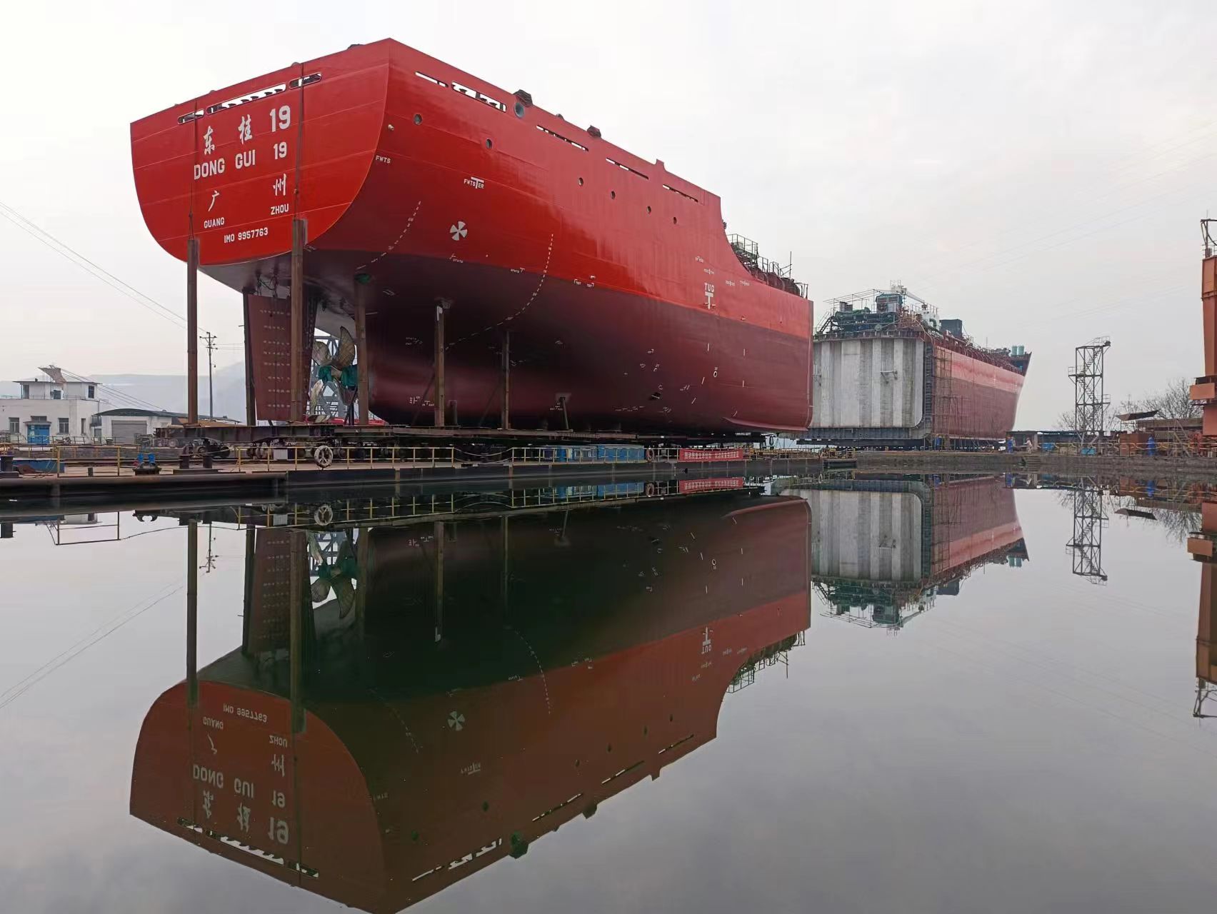 3月6日,由中國船舶集團(tuán)旗下川東造船為廣西梧州同舟船務(wù)運(yùn)輸有限公司建造的7450噸不銹鋼化學(xué)品船2號(hào)船艏總段、艉總段陸續(xù)拖移出廠房,開始大合攏對(duì)接。