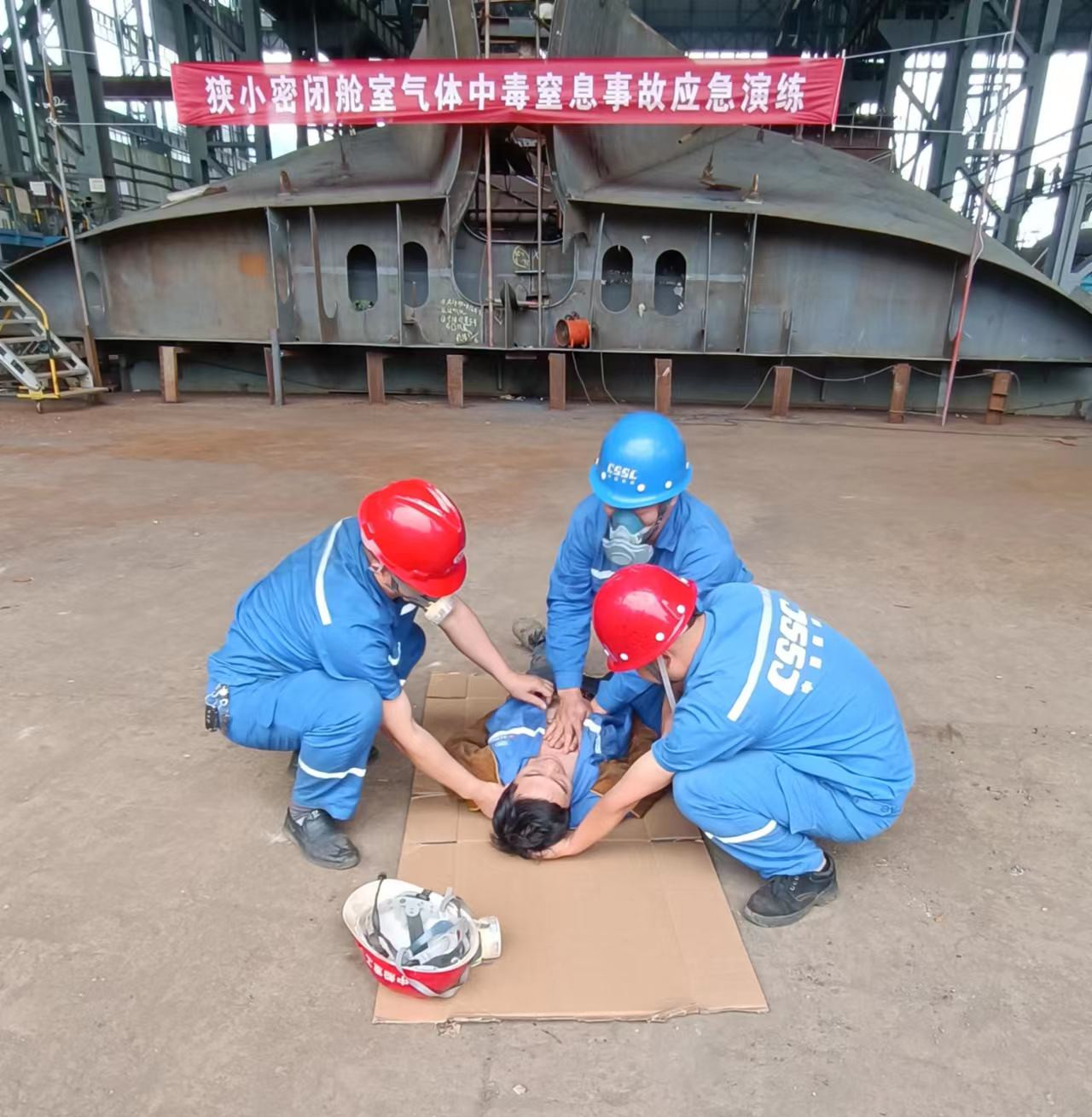 為了提高員工應急處置能力和發(fā)生狹小艙室氣體中毒窒息后員工的應急處置水平,6月15日,中國船舶集團川東造船船體工程部開展了“狹小艙室氣體中毒窒息事故”應急處置演練。各生產班組長和施工隊負責人參加演練,演練活動由部門負責人任總指揮,安全協管員任應急處置聯絡員,生產操作職工現場觀摩。
